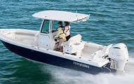 A low freeboard center console fishing boat designed for near-shore and coastal use